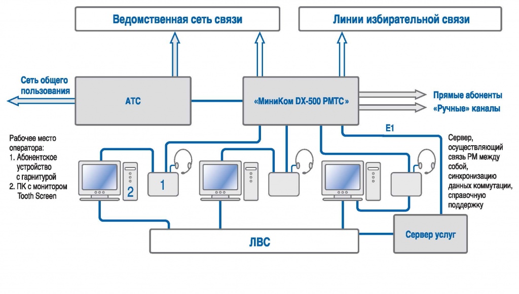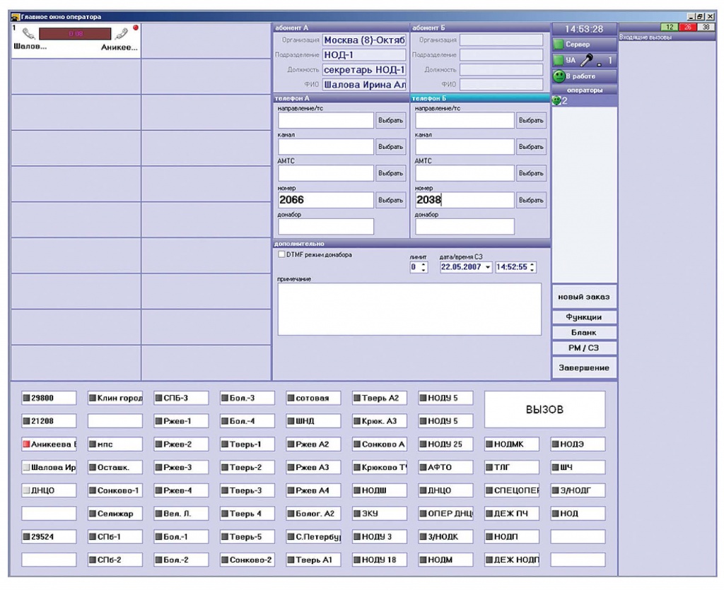 Весь процесс установления соединения визуально контролируется оператором на экране рабочего места, с которого обеспечиваются: